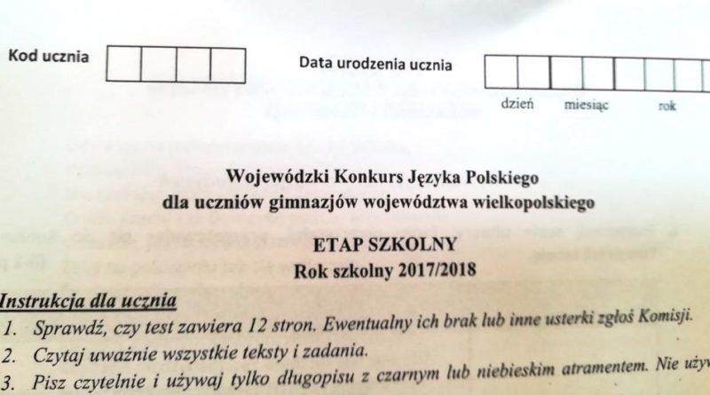 Czytaj dalej20 października 2017r. 11 uczniów klas II i III gimnazjum przystąpiło do etapu szkolnego Wojewódzkiego Konkursu Języka Polskiego. Do